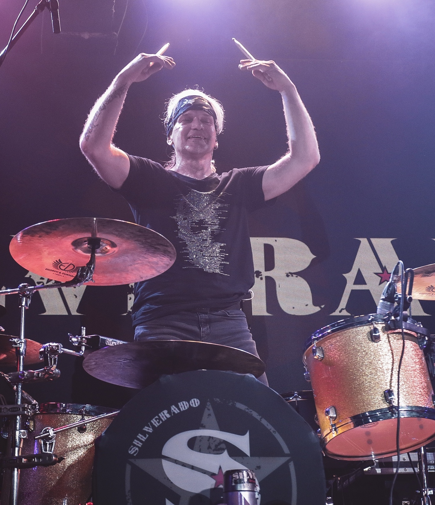 Крутейший профи, отметившийся во множестве российских команд первой величины. Был барабанщиком группы Shadow Host, играл в мелодик-дэт группе Icewind Blast. В 2006 году был приглашен в группу Артерия, где играл больше 10 лет. Кроме этого играл в Д.И.В. Kruger, Cathouse, с Валерием Гаиной и многими другими. Позитивный и неунывающий человек, любитель автомобилей и глэм рока!!! Приход Сергея в команду дал Silverado железобетонный ритм и тот самый "фирмовый" саунд что не описать словами.